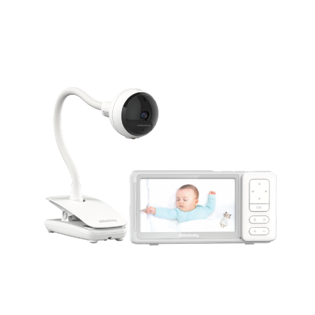 5"HD colour display parent unit, Flexi-arm baby WiFi cam with ON/OFF switch, Full HD 2560 x 1440 camera, 50-300 m range to parent unit, PU portable via battery, Remote access via Smart Phone App also for authorized shared users, Auto dimming, InfraRed night vision, free Care app with Feed & diaper tracking for babies, Preloaded nature sounds and lullabies, Room temperature monitoring, Zoom, Two-way talk, Micro SD card* support up to 128GB, Desktop-Wall or Clip mountable